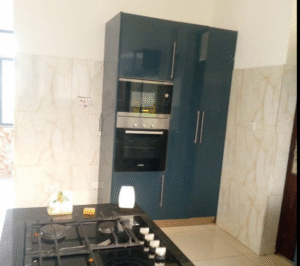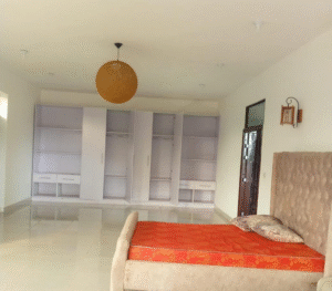 Outdoors, the property offers resort-style amenities, including a private swimming pool, beautifully landscaped gardens, and a helipad on the flat roof—an exclusive feature for private travel convenience. A secure perimeter wall surrounds the estate, which also includes a private borehole for uninterrupted water supply and separate servant quarters.